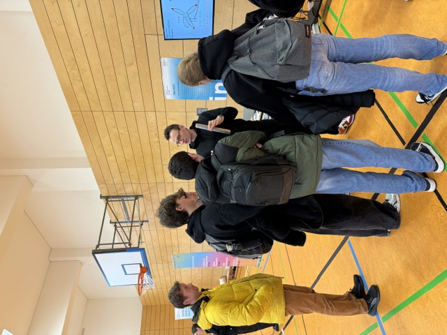 Für die Oberstufe gab es zusätzlich vertiefende Vorträge im Altbau, in denen Themen aus Ingenieurwesen, Informatik und Naturwissenschaften ebenso behandelt wurden wie Studien- und Berufsperspektiven. Ergänzt wurden diese durch eine interaktive Ausstellung in der Turnhalle, in der moderne technische Prozesse, Anwendungen und Projekte anschaulich präsentiert wurden.