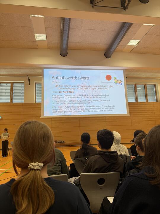 Hoher Besuch am Leibniz-Gymnasium in St. Ingbert. Zwei Mitglieder des japanischen Generalkonsulates aus Frankfurt waren am Donnerstag, dem 12.03.2026, beim jährlichen Schulbesuch im Rahmen der Veranstaltung „Japan im Klassenzimmer“ zu Gast. Nach der Begrüßung durch den Schulleiter des Leibniz-Gymnasiums, Erik Brill, informierten die Japanologin, Carolin Scholz, und die Vizekonsulin des Generalkonsulates, Okuno Maiko, die SchülerInnen der Klassenstufe 9 in einem anschaulichen Vortrag über das japanische Schulsystem und den Schulalltag. In der sich anschließenden praktischen Phase der Veranstaltung durften die etwa 120 SchülerInnen die japanische Radiogymnastik in der Turnhalle ausprobieren.